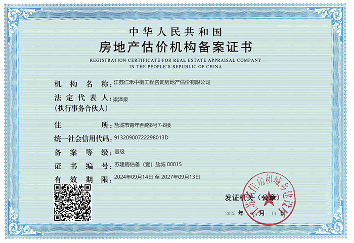 • 房地產估價機構備案證書